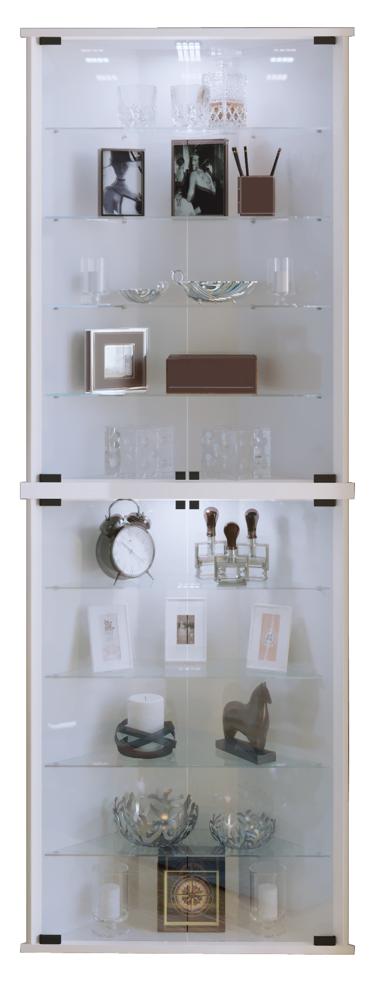 Vecko Maxi vitrineskab, hjørne med 2 glaslåger, hvid