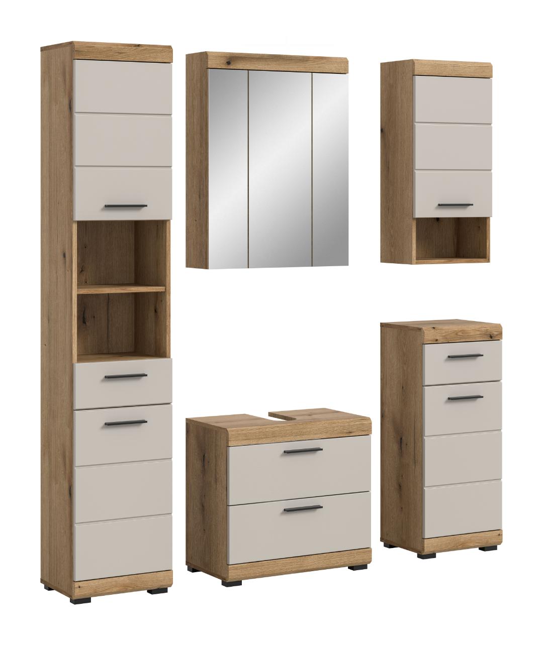 Grado vaskeskab 140cm 3 skuffer, 2 hylder eg dekor,mat grå