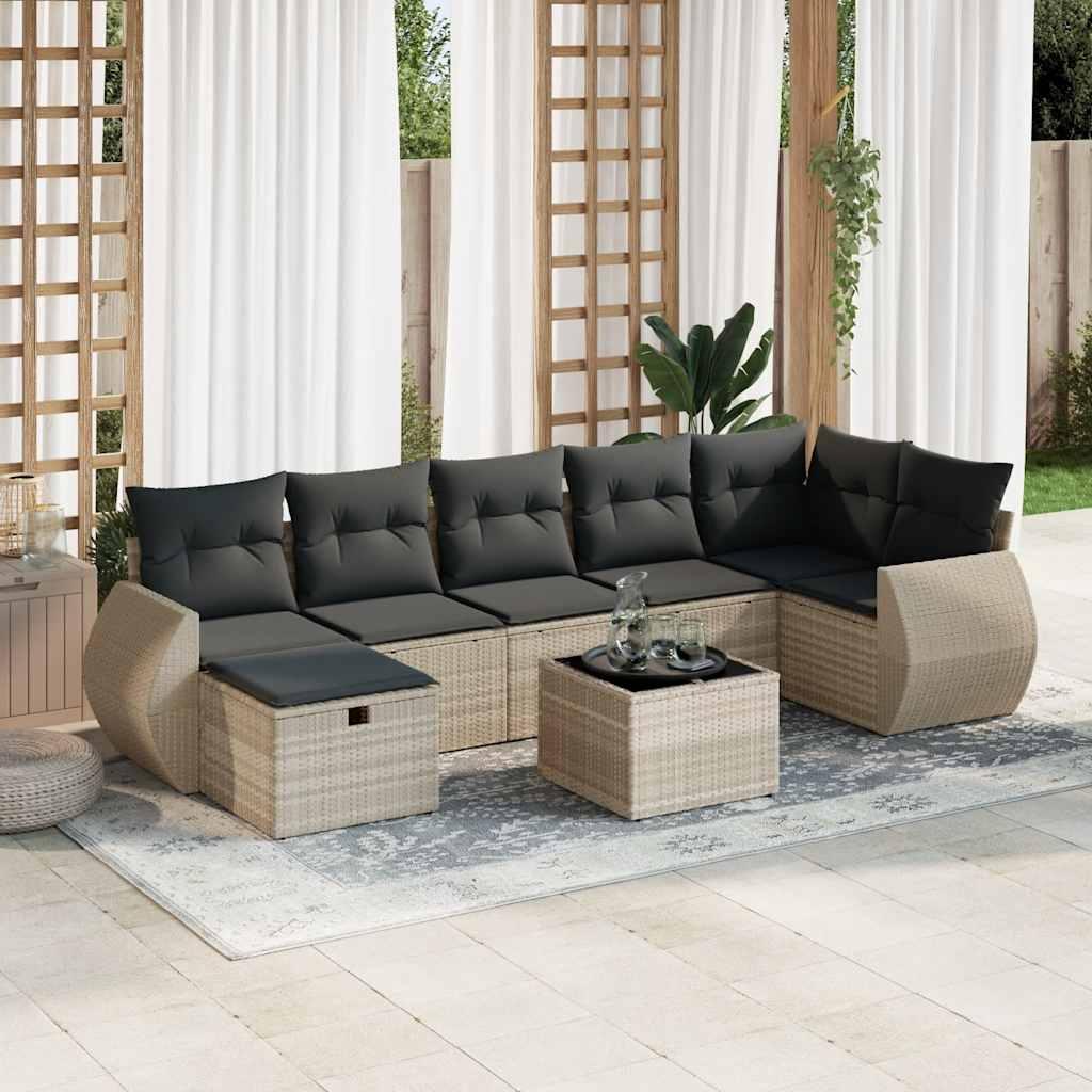 Sofasæt til haven 7 dele med hynder polyrattan beige