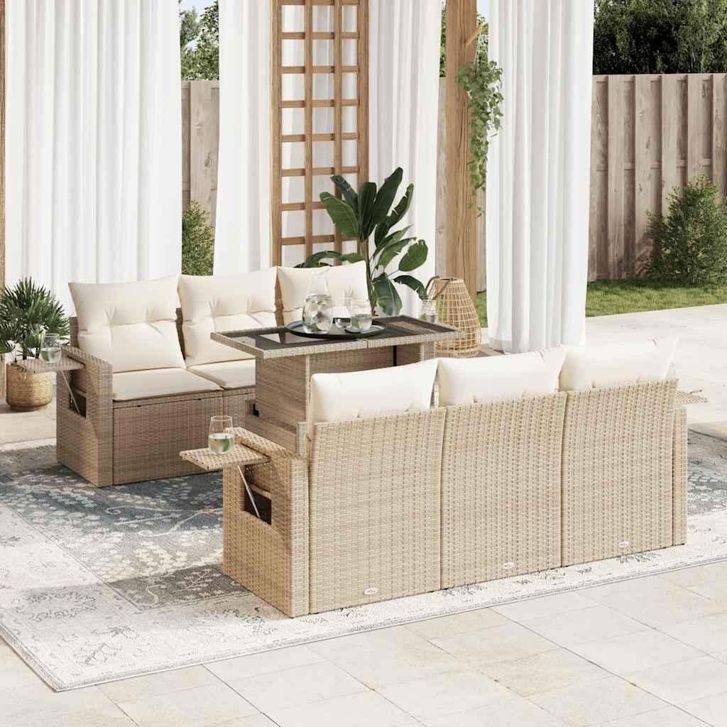 Sofasæt til haven 6 dele med hynder polyrattan beige