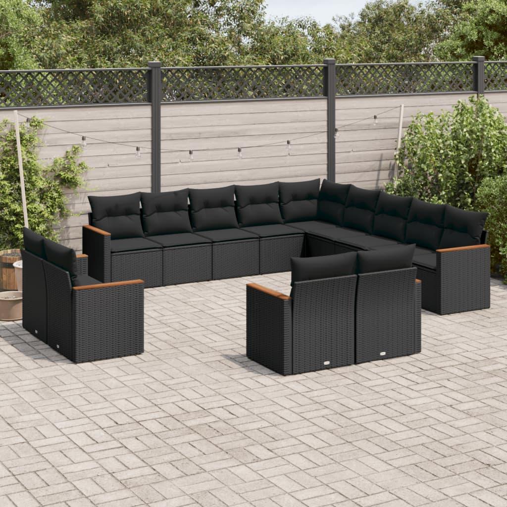 Sofasæt til haven 13 dele med hynder polyrattan sort