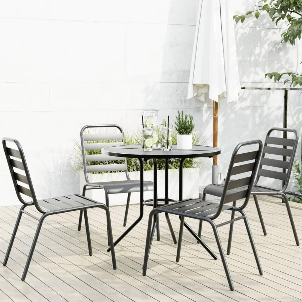Udendørs møbelsæt 5 dele stabelbar pulverlakeret stål antracit