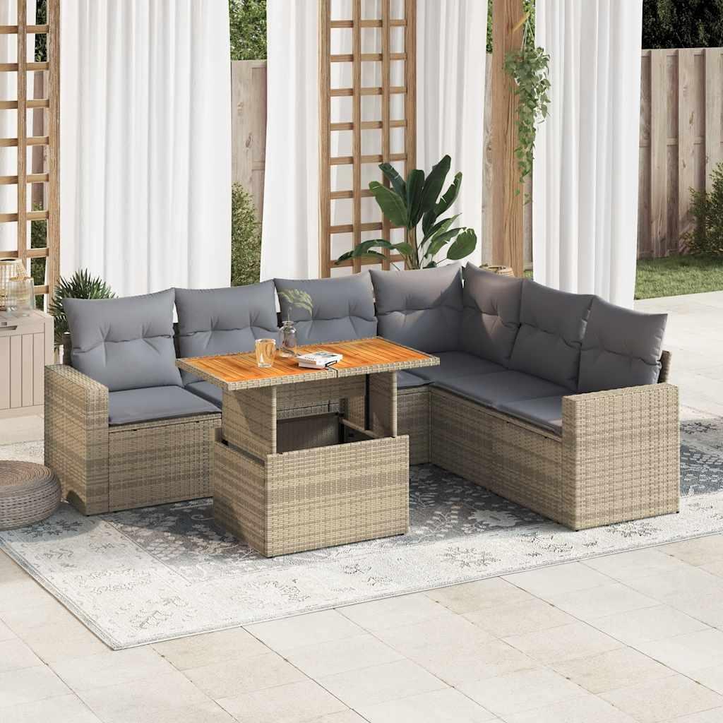 Sofasæt til haven 7 dele med hynder polyrattan beige