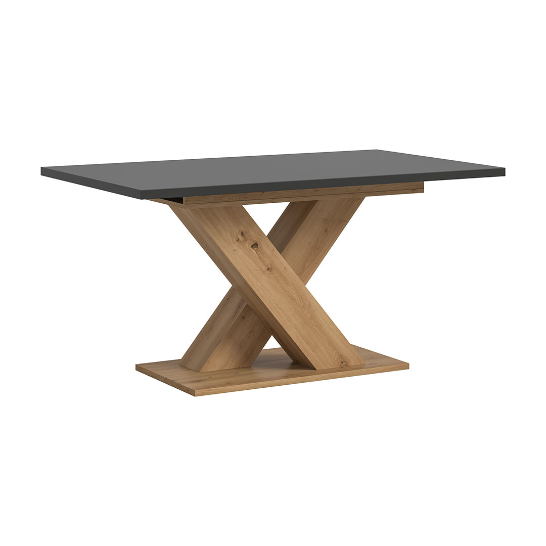 Motion spisebord X-fod 90x150/190cm inkl. 1 tillægsplade grå, eg dekor