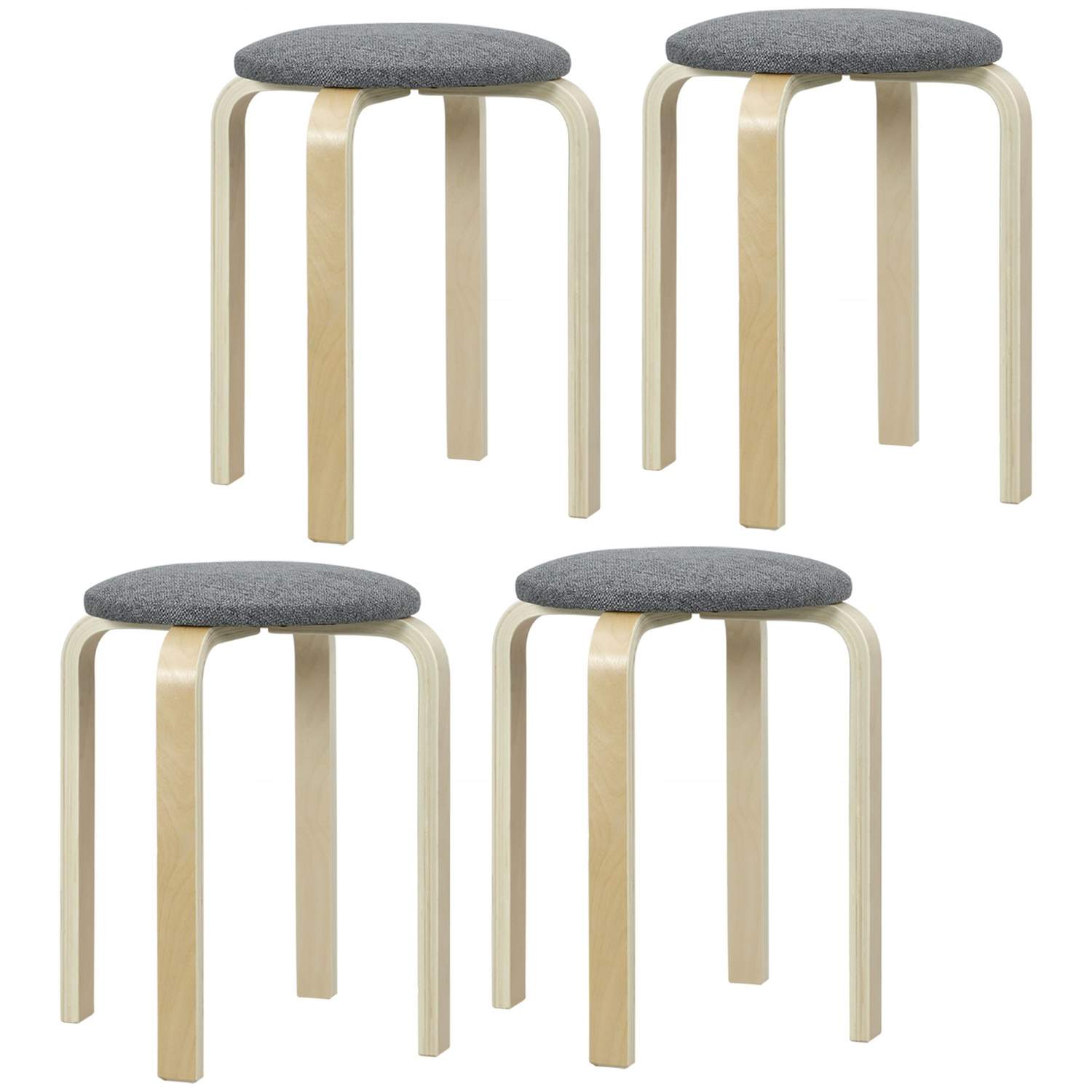 Sett med 4 stabelbare polstrede krakker, lakkert overflate, treben, grå