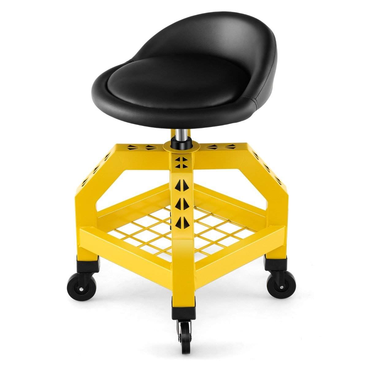 Høydejusterbar verkstedkrakk 150 kg bæreevne med verktøybrett verkstedstol gul