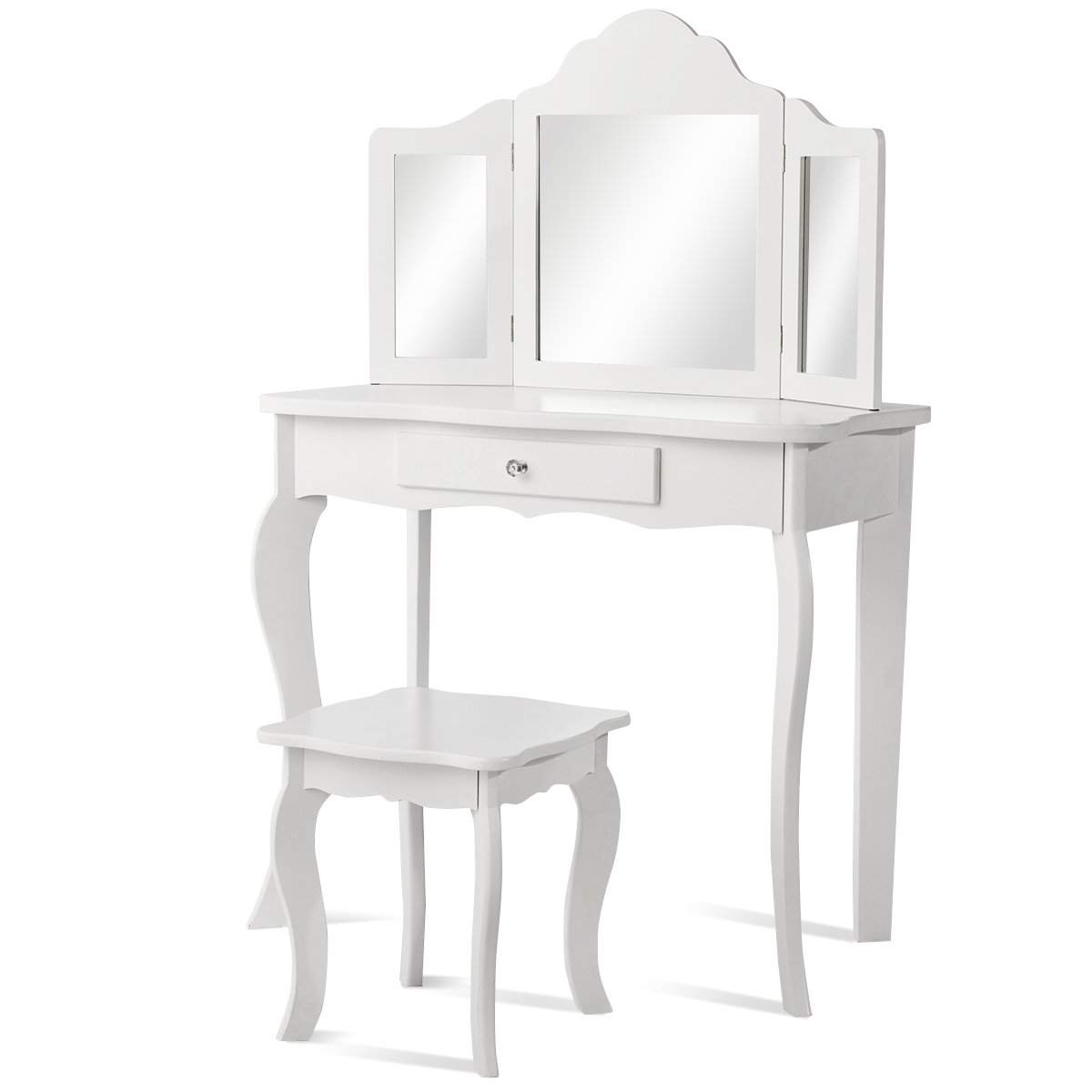Sminkebord og krakksett for barn, sminkebord med skuff, speil, 70 x 34 x 103 cm, hvit