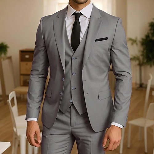 Uomo Completi Affari Matrimonio Grigio chiaro Primavera, Autunno, Inverno, Estate Tuta Moda Formale Tinta unita Vestibilità aderente 3 pezzi Monopetto Due Bottoni