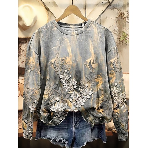 Per donna Felpa Pullover Stampato Floreale Grafico Casual Manica Lunga Girocollo Top Regolari Casuale Streetwear Abbigliamento Quotidiano Blu Nero Rosa Arancione Grigio Primavera Autunno Inverno