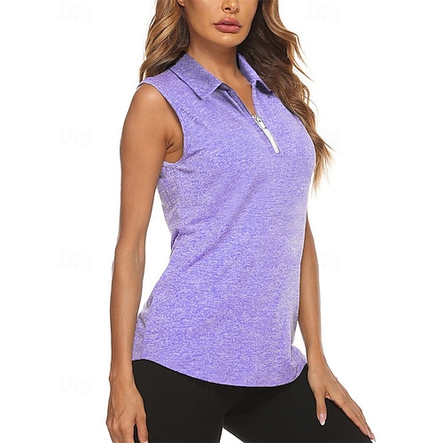 Per donna Tinta unita Maglietta sportiva Polo da golf Maglia da tennis Senza Maniche Cerniera Alta elasticità Traspirante Tennis Golf Pickleball Collo ripiegato Collo con zip Maglietta Top Azzurro