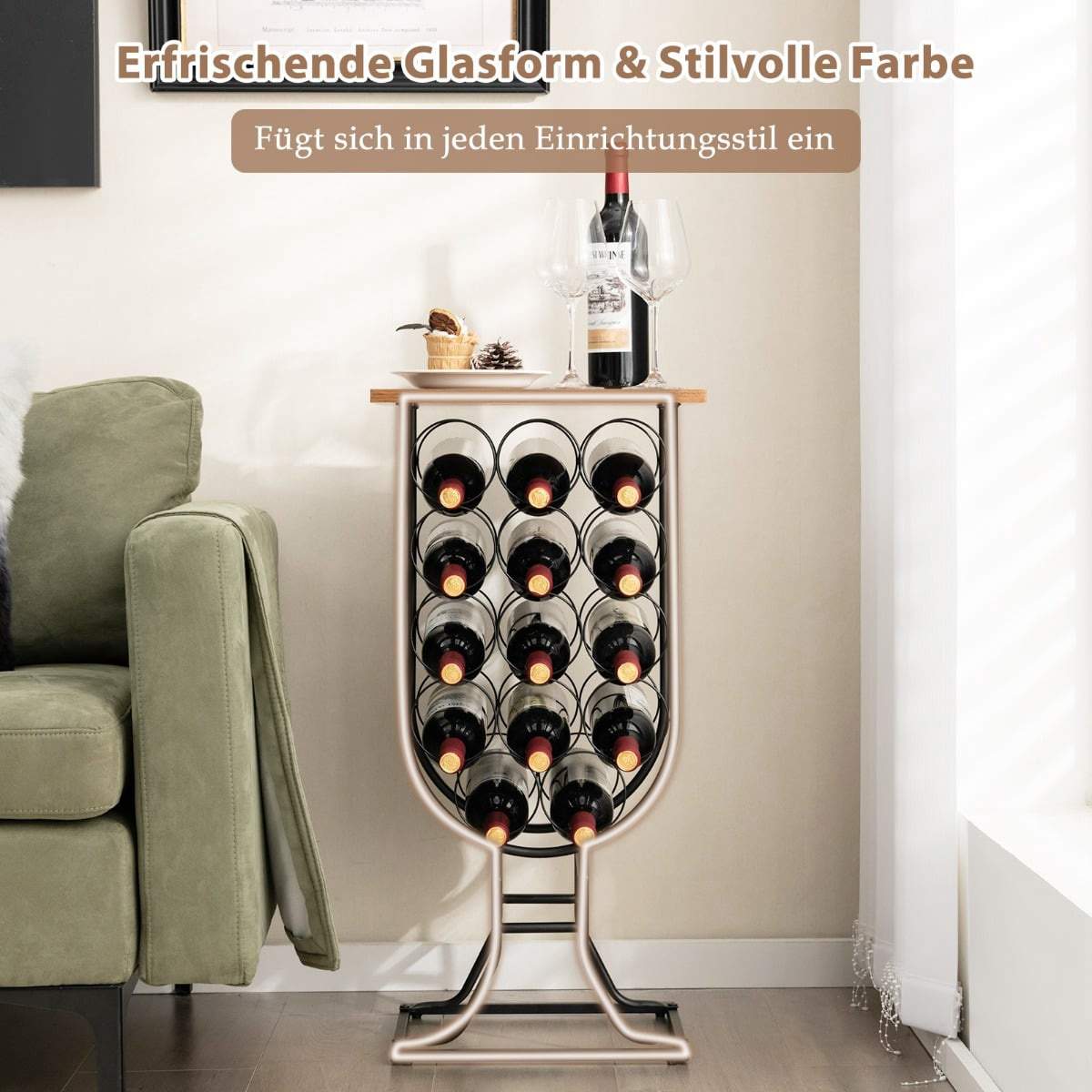 Vinreol til 14 flasker med aftagelige hjul