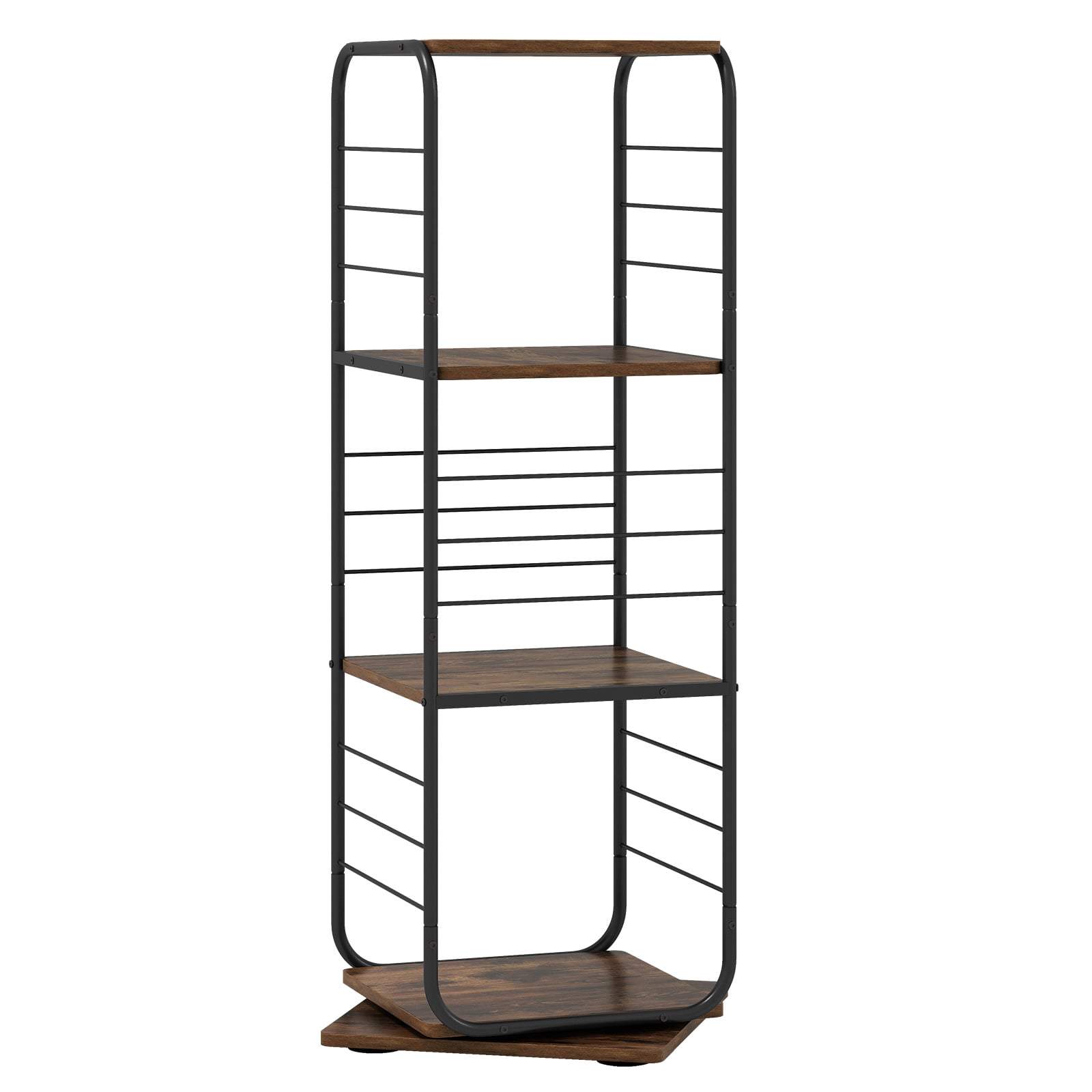 Roterende bokhylle med 4 etasjer – kompakt, rustikk, 360 graders tilgang