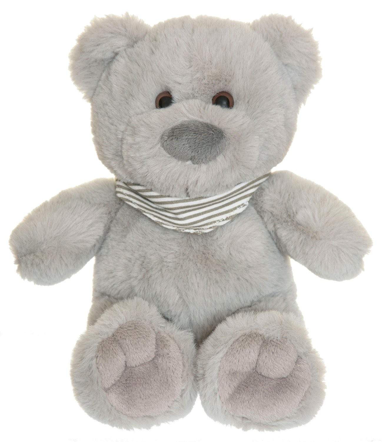 Grå teddybjørn, 25 cm, myk pels og økologisk skjerf