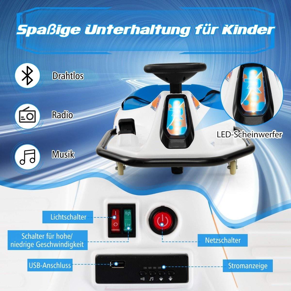 Elektrisk gokart for barn – 24V driftbil med 360° spinn