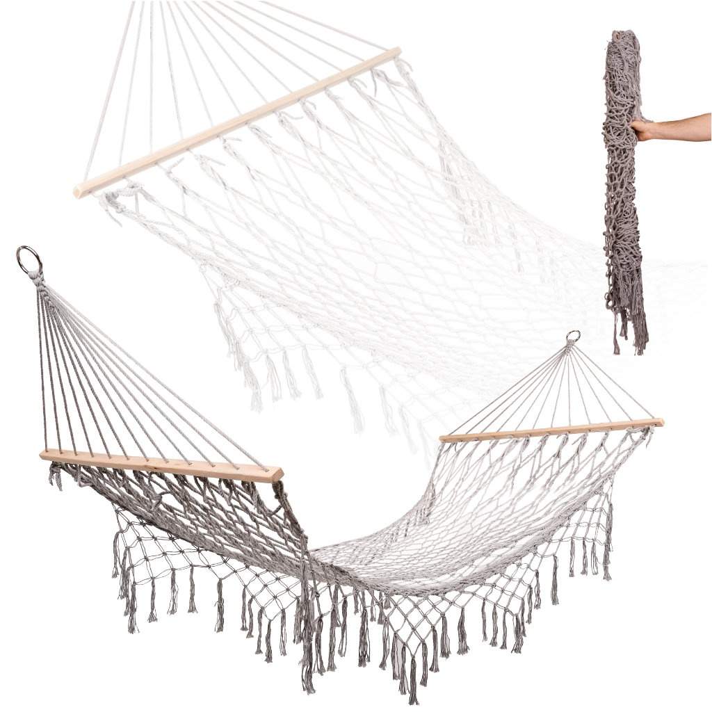 Hagehengekøye boho mesh dusk 200cm grå