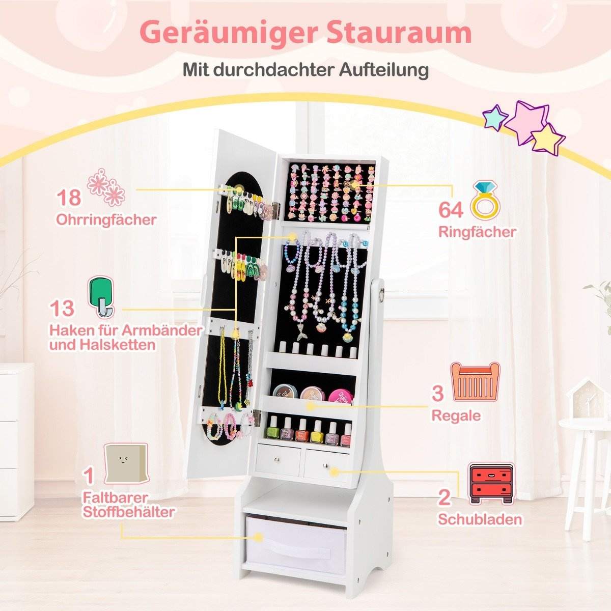 Spejlsmykkeskab til børn i fuld længde – Justerbart, pladsbesparende