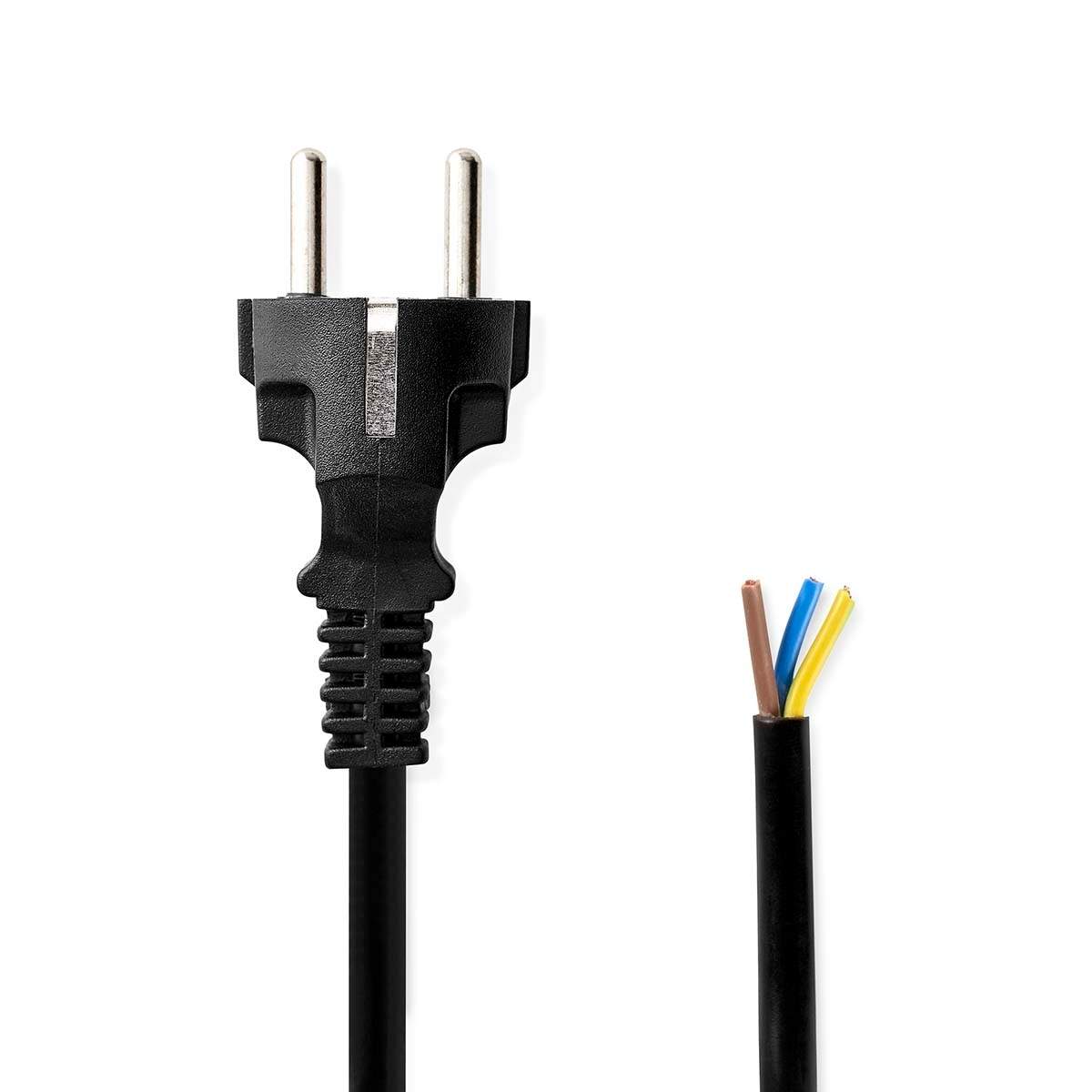 Strømkabel | Jordet kontakt han | Open | Rett | Rett | Nikkel belagt | 3.00 m | Rund | PVC | Sort | Label
