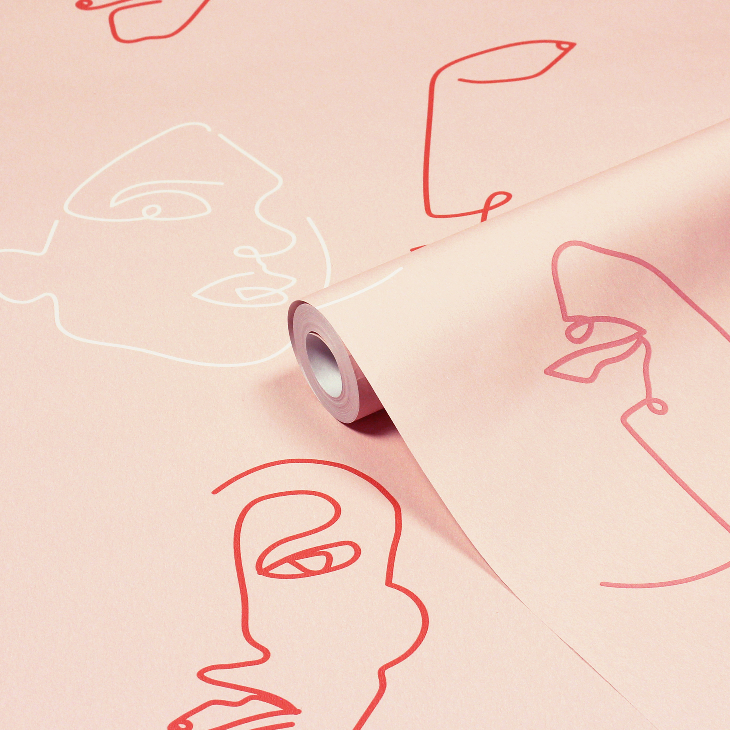 furn. Kindred Abstract Faces Printed Wallpaper - Blush - One Size | furn. Sale | Discount Designer Brands