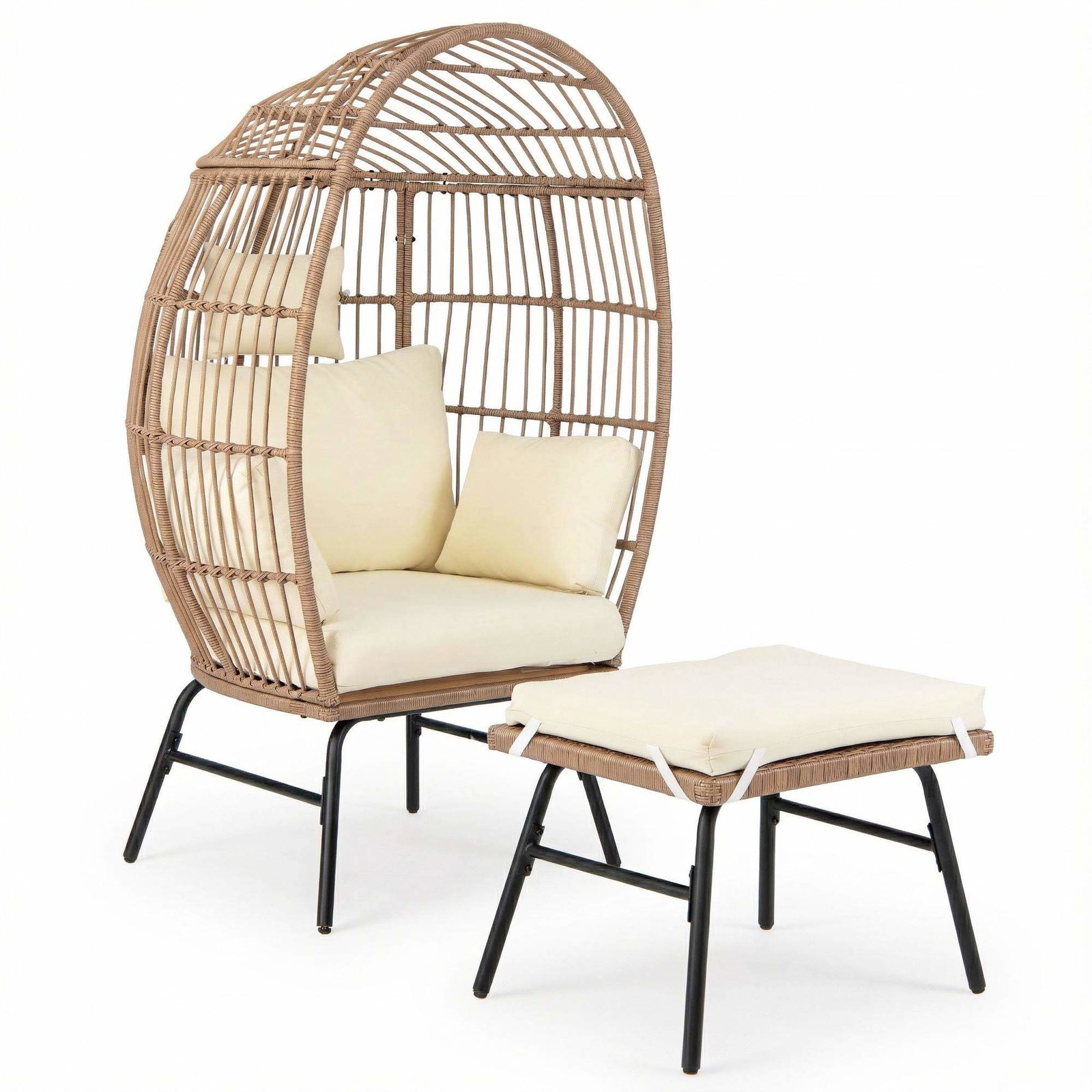 Rotting Egg Chair med fotskammel – Polstret, Innendørs/Utendørs