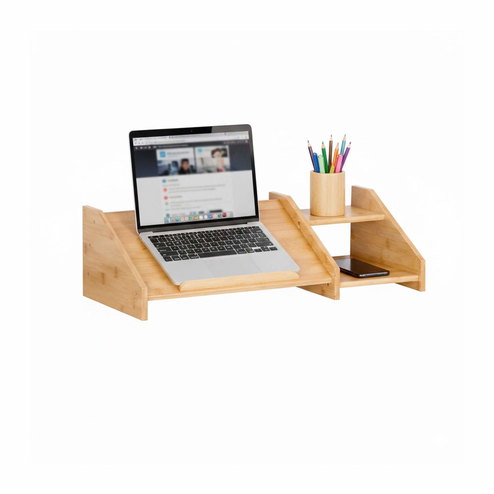 Bambus laptopstativ med sidehyller – ergonomisk design