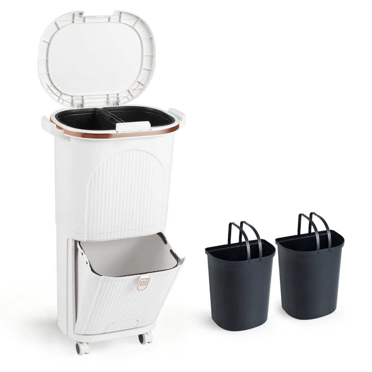 42L kjøkkenavfallsbøtte – 3 rom, pedal, hjul