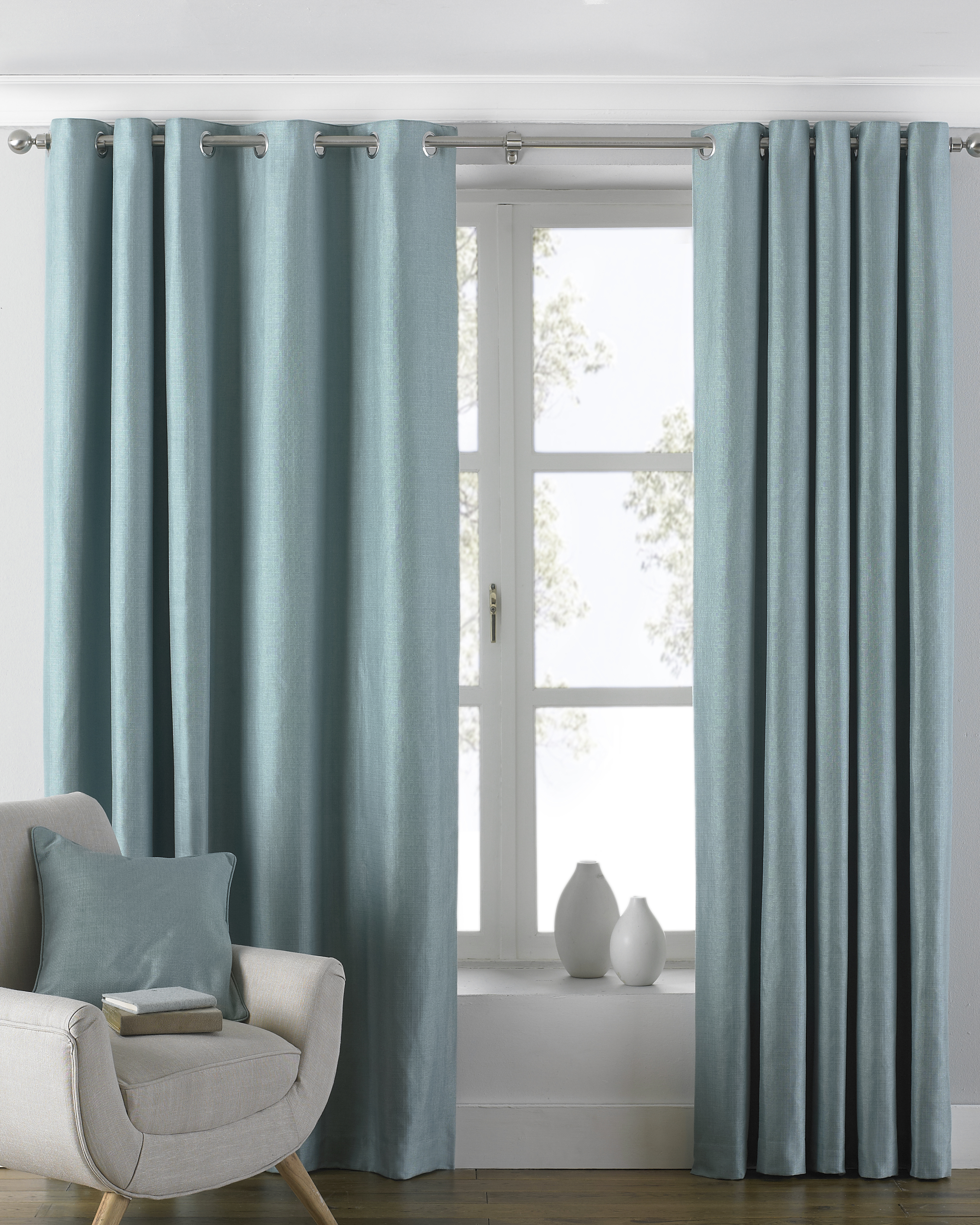 Paoletti Atlantic Twill Woven Eyelet Curtains in Duck Egg Blue - Size 168 cm x 183 cm | Paoletti Sale | Discount Designer Brands