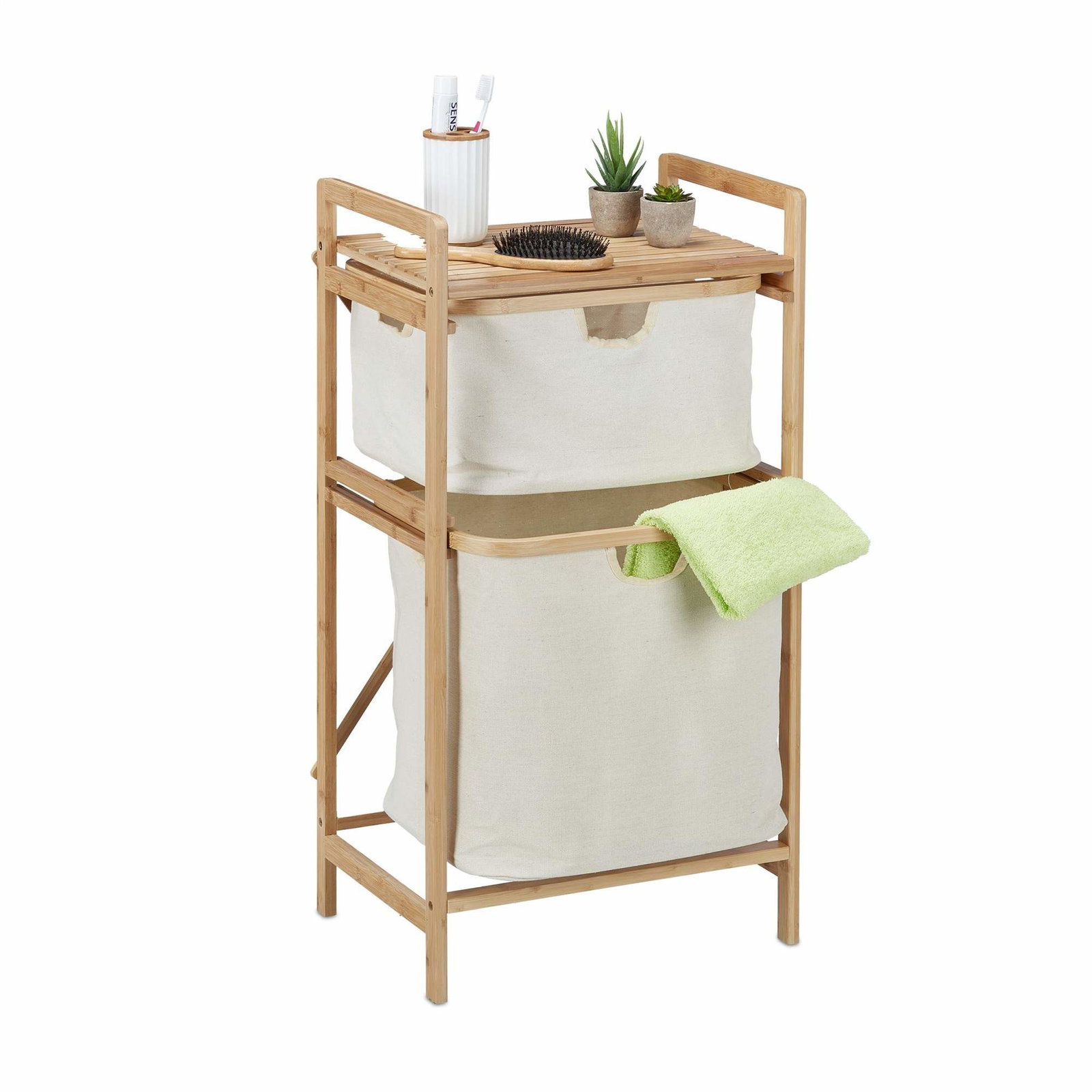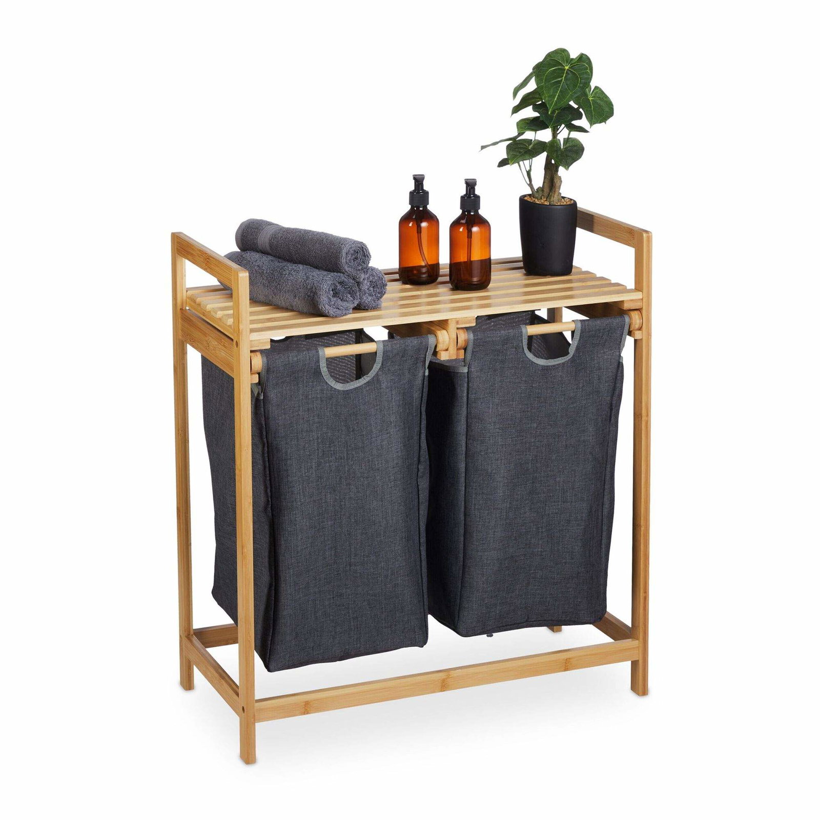 Bambus skittentøyskurvhylle med 2 hyller
