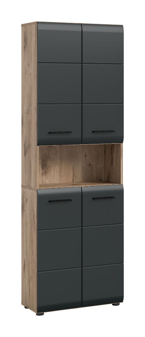 Ice højskab badeværelse 4 låger, 1 hylde sort mat, eg dekor
