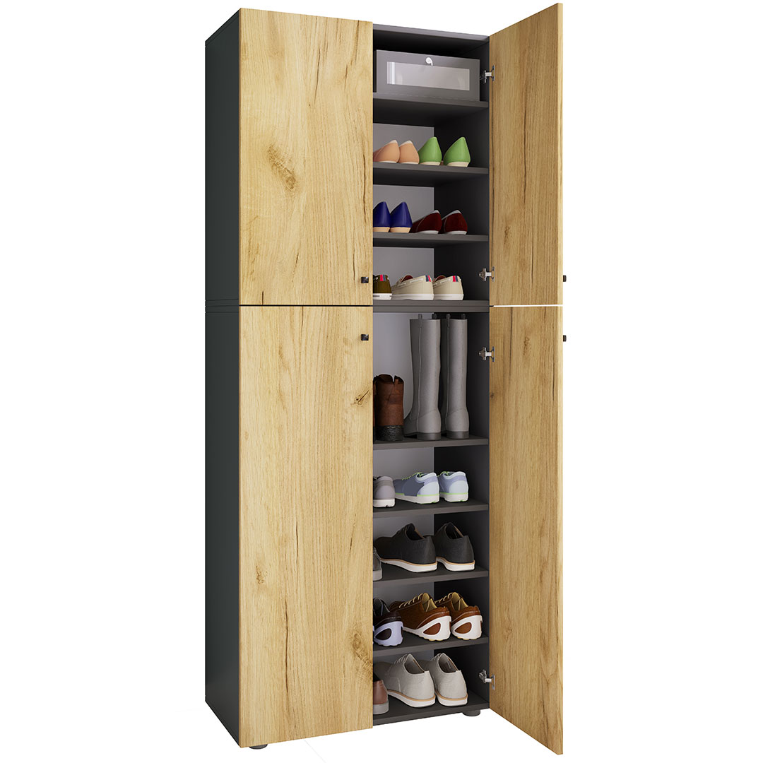 LonaXXL9DT skoskab 4 låger antracit, eg dekor