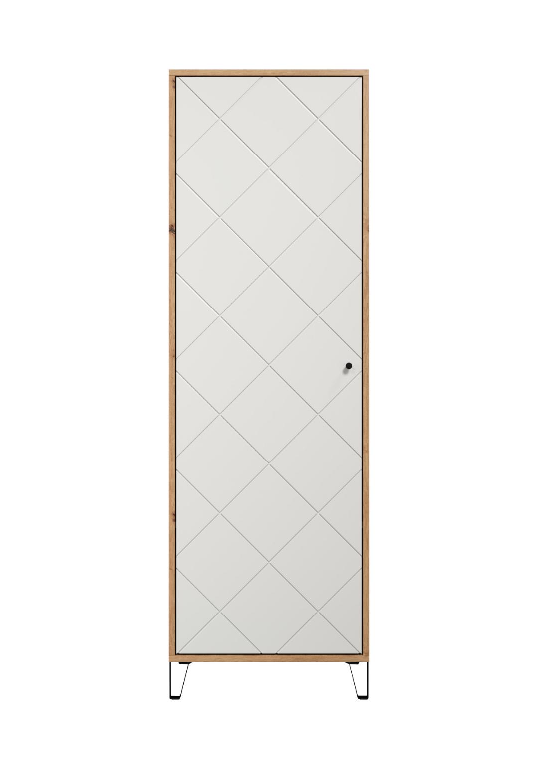 Grafico klædeskab 1 låge mat hvid, eg dekor