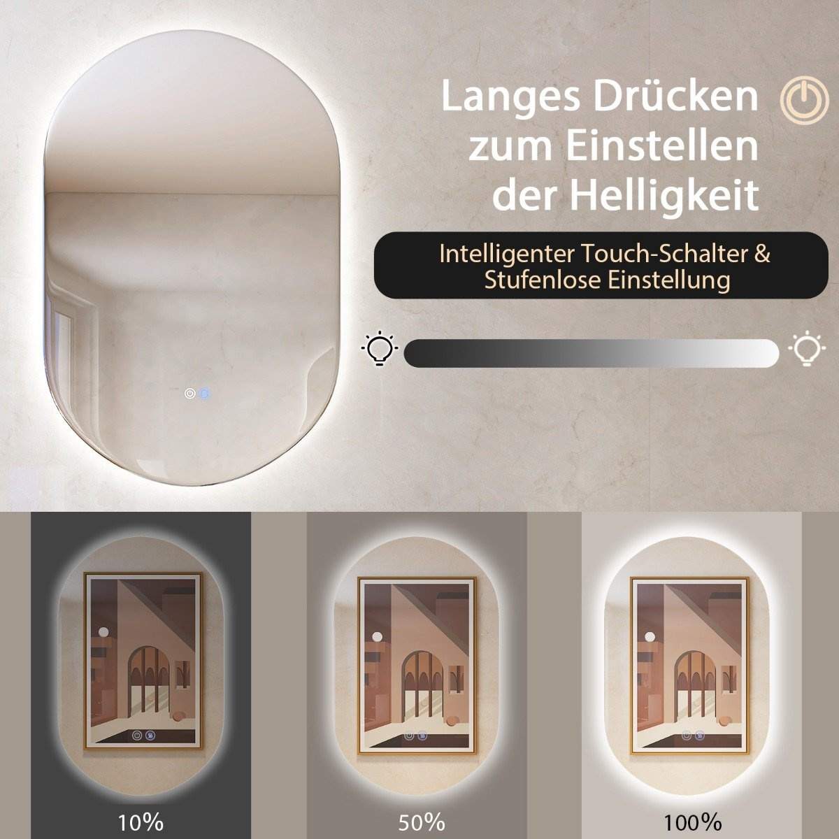 80 x 50 cm LED veggspeil ovalt dimbart baderomsspeil