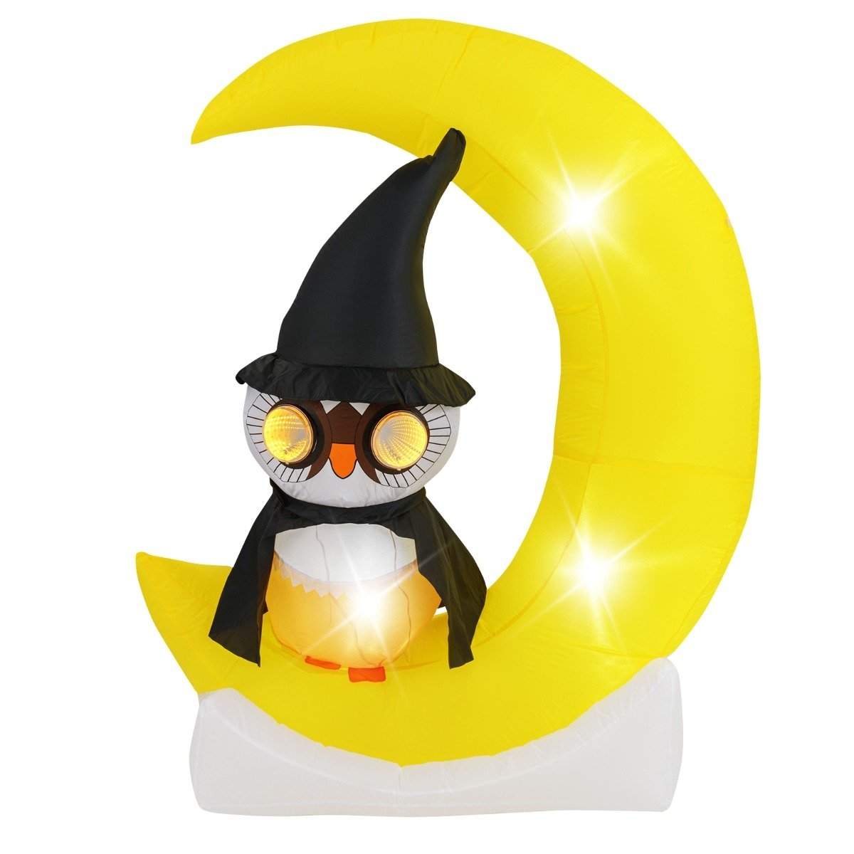 155 cm LED oppblåsbare ugler står på månen Forferdelig Halloween-dekorasjon