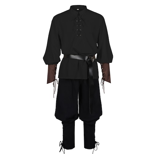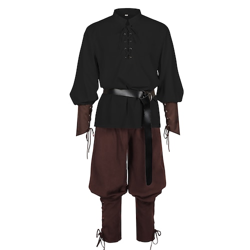Medievale Rinascimento Costume di fantasia Lunghe Pirata Vichingo Costume Per uomo Vichingo Costumi da pirata Halloween Carnevale Performance LARP Fiera Rinascimentale Adulti Camicia Pantaloni Cintura