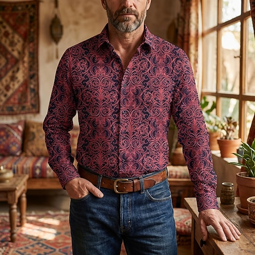 Retrò Vintage Anni '70 Camicia Camicia Aloha Lunghe Hippie Paisley Costume Per uomo Mascherata Festival Musicale Feste Abbigliamento quotidiano Adulti Camicia
