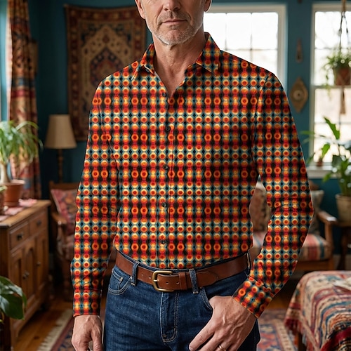 Retrò Vintage Anni '70 Camicia Camicia Aloha Lunghe Hippie Geometrico Costume Per uomo Mascherata Festival Musicale Feste Abbigliamento quotidiano Adulti Camicia