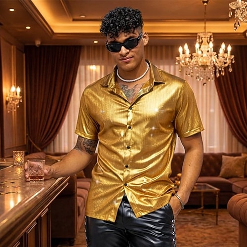 Retrò Vintage Anni '70 Anni '80 Camicia Disco Metallico Lucido Costume Per uomo Costume di Carnevale Natale Halloween Carnevale Club Festa a Tema Parata dell'Orgoglio Adulti Camicia
