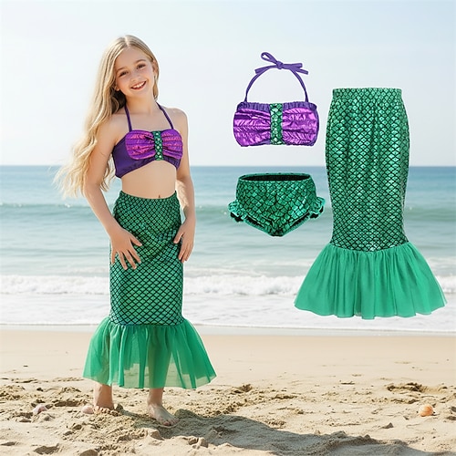 Sirena Principessa Vestito Costume per festa a tema Film Cosplay for Ragazze Bambini Halloween Carnevale Mascherata Vacanza Ferie Nuoto