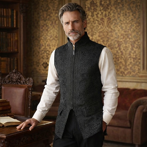 Gotico Vittoriano Medievale Gilet Senza maniche Principe Vampiro Gentiluomo Chiusura lampo Costume Per uomo Halloween Carnevale Mascherata Fiera Rinascimentale LARP Festa a tema retrò Adulti Gilet