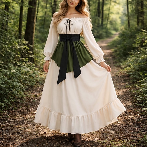 Retrò Vintage Medievale Rinascimento Midi Vestito Cintura in Vita Lunghe Vichingo Scollo a V Costume Per donna Halloween Carnevale Fiera Rinascimentale LARP Festa a tema retrò Adulti Vestito Cintura