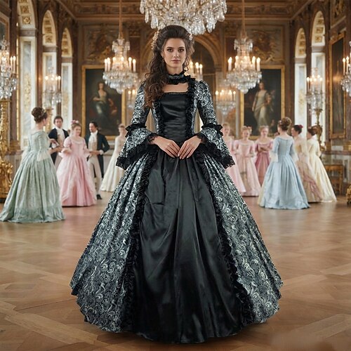 Rococò Vittoriano 18° Secolo Lunghezza al pavimento Lunghezza lunga Vestito Costume da festa Mascherata Taglie Forti Normale Su misura Floreale Abito da ballo Costume Per donna Reale Feste Balli di