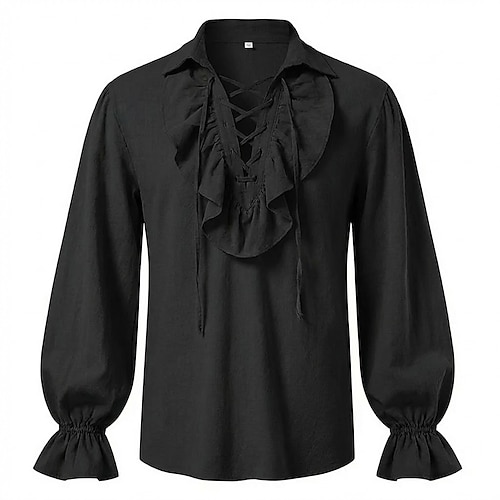 Retrò Vintage Medievale Rinascimento Camicia Normale Pirata Vichingo Scollo a V Costume Per uomo Costumi da pirata Halloween Carnevale Vacanza Casual Quotidiano Adulti Camicia Primavera Estate
