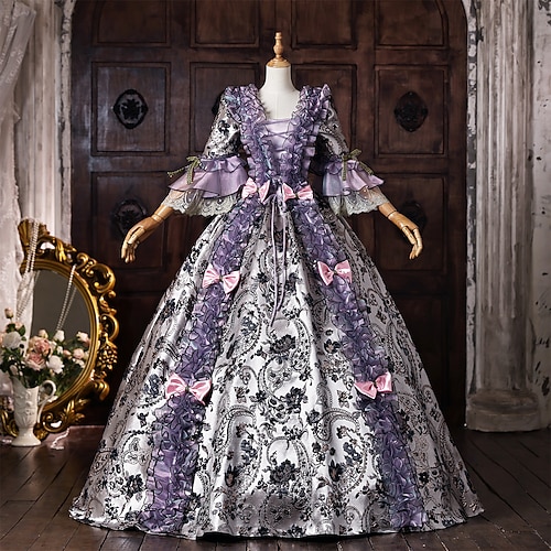 Rococò Barocco Abito da Ballo Lunghezza al pavimento Vestito Abito da Ballo Lunghe Principessa Sposa Fiocco Floreale Abito da ballo Scollo a V Costume Per donna Reale Halloween Carnevale Mascherata
