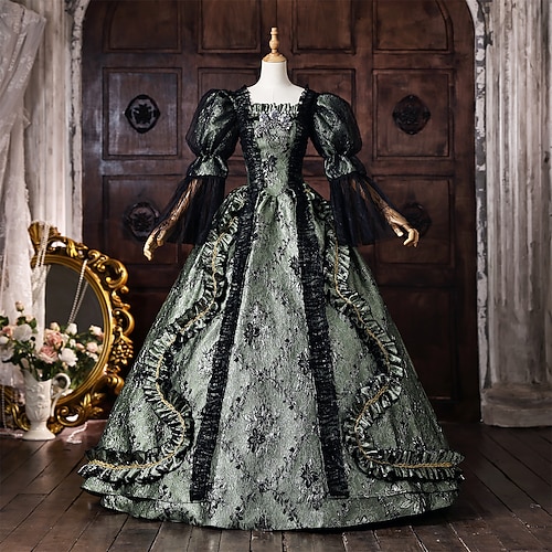 Rococò Barocco Abito da Ballo Lunghezza al pavimento Vestito Abito da Ballo Lunghe Principessa Sposa Pizzo Ricamato Floreale Abito da ballo Collo quadrato Costume Per donna Reale Halloween Carnevale