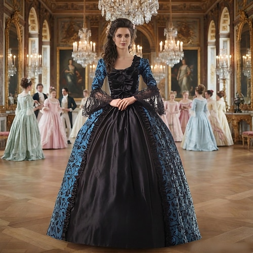 Rococò Vittoriano Rinascimento Lunghezza al pavimento Vestito Costume da festa Mascherata Taglie Forti Normale A palloncino Manica del polsino svasato Principessa Pizzo Tela Vintage Abito da ballo