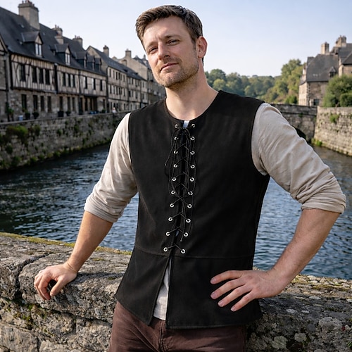 Medievale Rinascimento Pantaloni Abiti Cintura in Vita Lunghe Vichinghi Ranger Scollo a V Costume Per uomo Vichingo Costumi da pirata Mascherata Feste Fiera Rinascimentale LARP Adulti Camicia