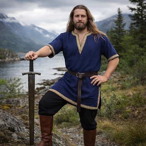 Medievale Rinascimento Camicia Lunghe Pirata Vichingo Costume Per uomo Vichingo Costumi da pirata Halloween Carnevale Performance LARP Fiera Rinascimentale Adulti Camicia