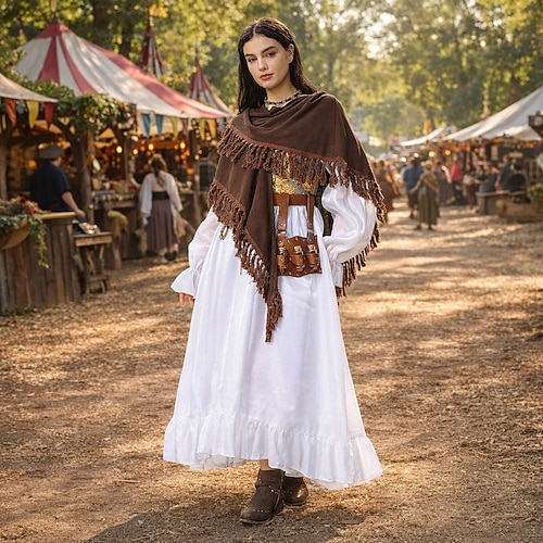 Set Retrò Vintage Medievale Rinascimento Lunghezza al pavimento Vestito Accessori Scialli con accessori Lunghe Strega Ranger Ricamato Costume Per donna Halloween Carnevale Feste Mascherata Festa a