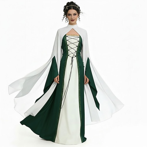 Medievale Rinascimento Vestito Mantello Abito Strega Nobile Abiti reali Costume Per donna Celtico Fantasia Halloween Carnevale Performance LARP Fiera Rinascimentale Adulti Vestito