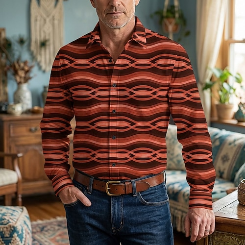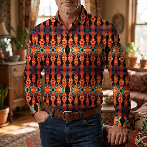 Retrò Vintage Anni '70 Camicia Camicia Aloha Lunghe Hippie Geometrico Costume Per uomo Mascherata Festival Musicale Feste Abbigliamento quotidiano Adulti Camicia