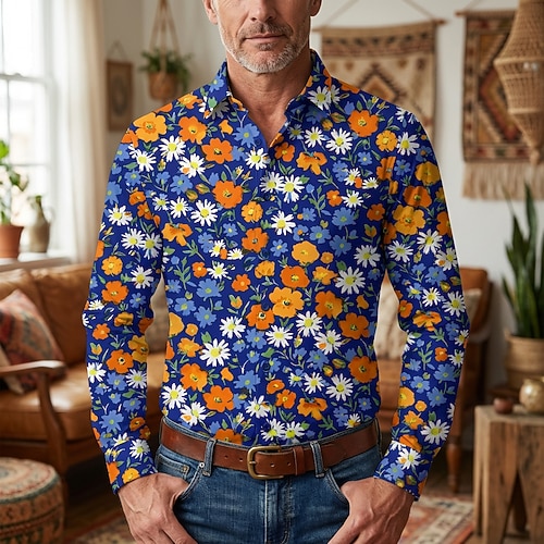 Retrò Vintage Anni '70 Camicia Camicia Aloha Lunghe Hippie Floreale Costume Per uomo Mascherata Festival Musicale Feste Abbigliamento quotidiano Adulti Camicia